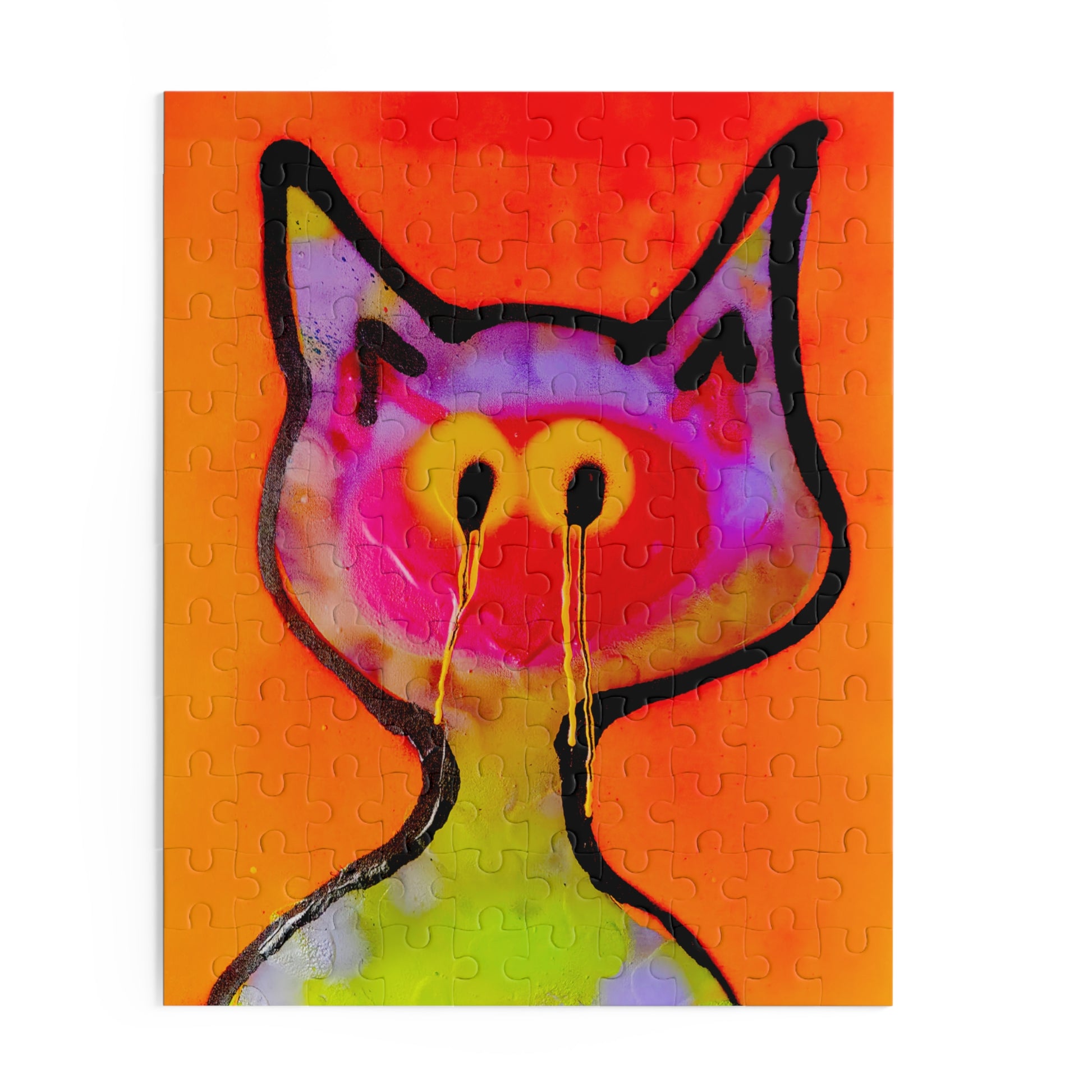 Cat Face Puzzle — Colorful Neon Graffiti Cat Jigsaw (120/252/500-Piece)